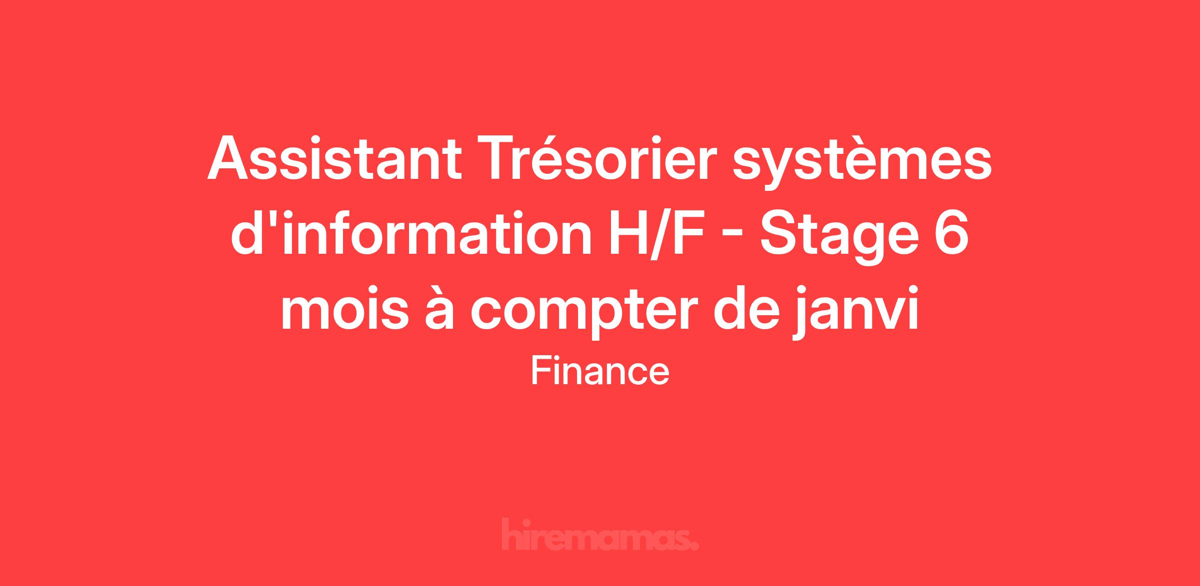 Assistant Trésorier systèmes d'information H/F - Stage 6 mois à compter de janvi