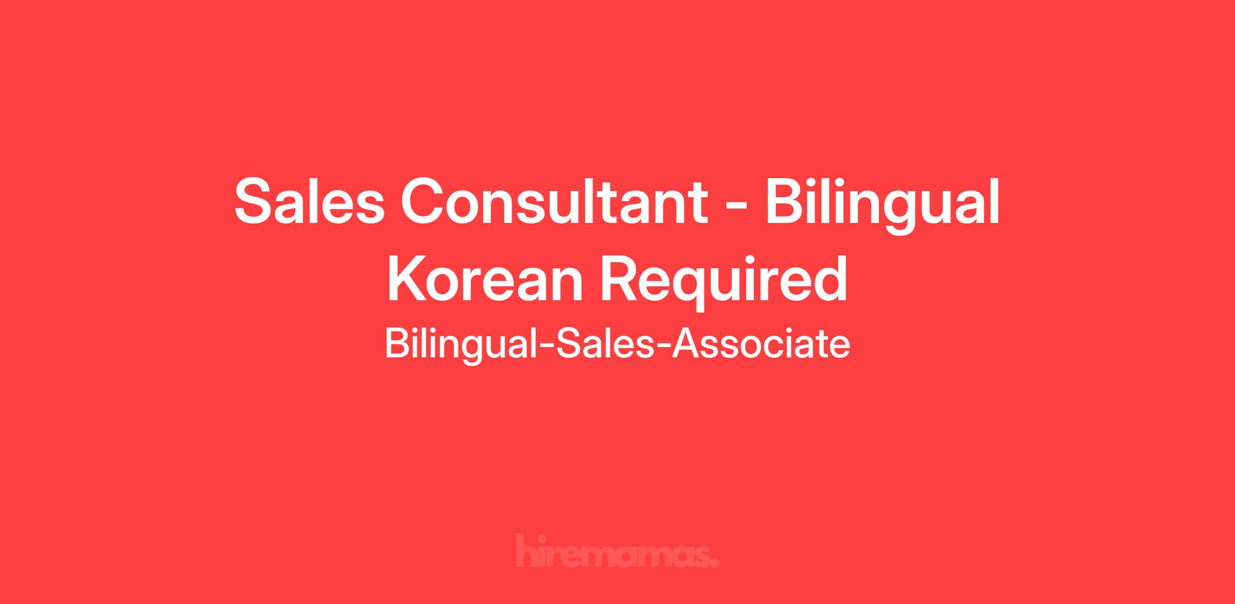 Sales Consultant - Bilingual Korean Required